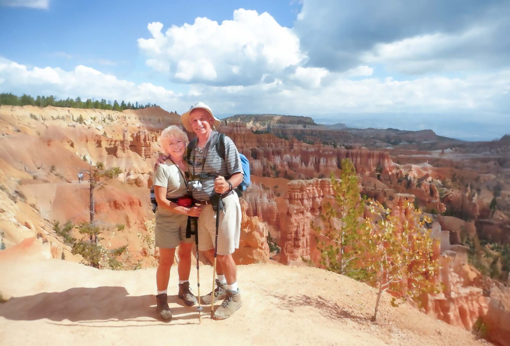 JoAnn isn’t kidding. When visiting Zion National Park, she was determined to celebrate her 60th birthday by crossing Angels Landing, the razor-thin path that hovers 5,500 feet above the valley floor, part of which requires hand-over-hand grips upon a lateral chain to cross. Wayne, a self-proclaimed acrophobe, waited down trail at Scout’s Lookout.