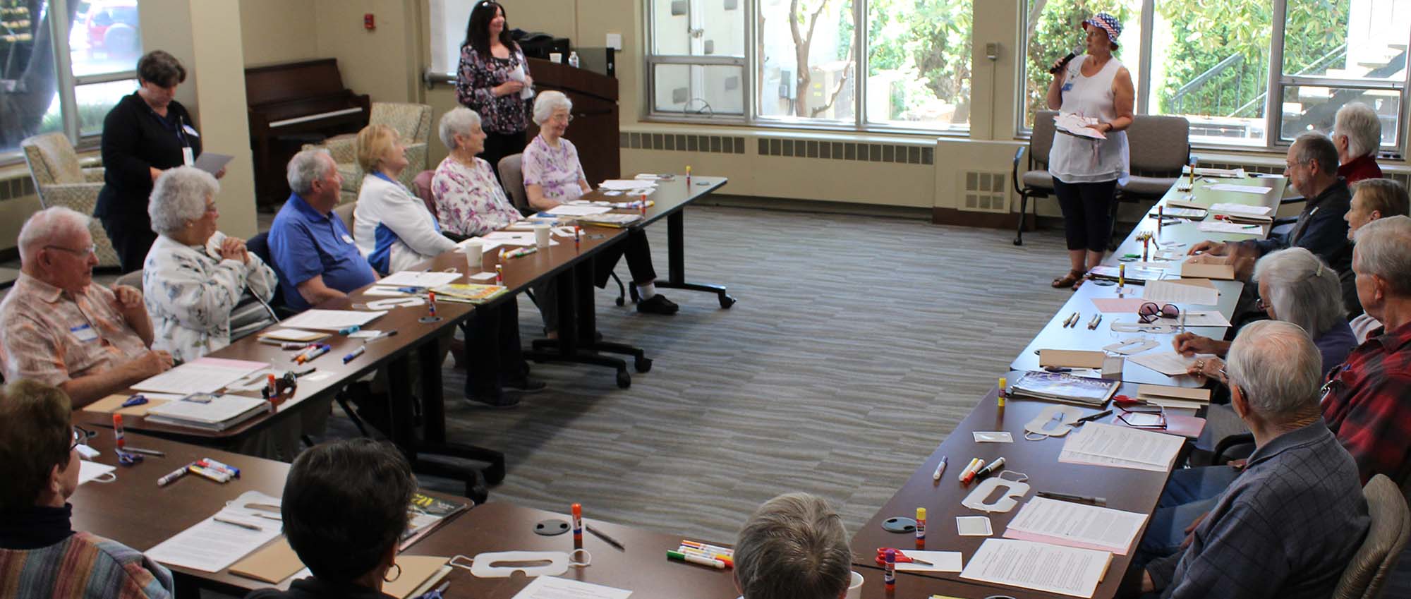 Betty equates the Wesley U program with a community college extended learning curriculum. She took many Anacortes Senior College courses, where she lived for 25 years. As a systems analyst for Group Health, she specialized in supporting interfaces between different computer systems. However, she prefers humanities classes at Wesley U.